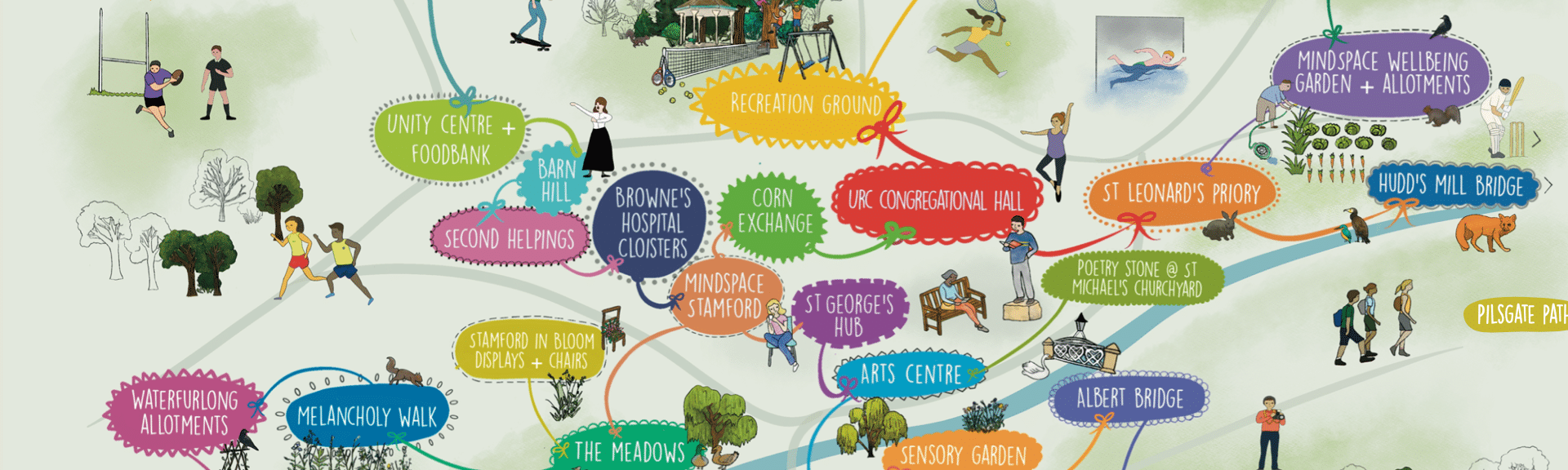 The Wellbeing Map of Stamford in was produced in partnership with Art Pop-Up and was funded by The National Lottery Community Fund.